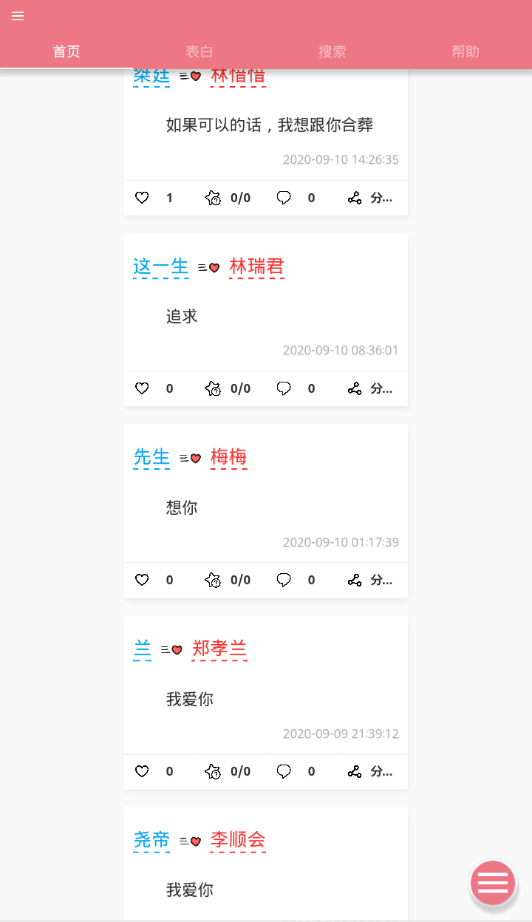 表白成功率统计:匿名分享表白结果,获取参考数据,系统会基于大数据给出优化建议。