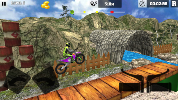 《越野特技摩托车》是一款令人肾上腺素飙升的野外越野摩托车特技闯关游戏,它将带你进入一个充满挑战与激情的极限世界。在这款游戏中,玩家将化身为一名技艺高超的摩托车手,驾驶着性能强劲的越野摩托,在各种精心设计的复杂赛道上完成一系列高难度特技动作。从陡峭的山坡到湍急的河流,从狭窄的木桥到危险的悬崖,每一个关卡都将考验你的平衡感、反应速度和驾驶技巧。只有真正掌握摩托车操控精髓的玩家,才能在这些险象环生的赛道上游刃有余,最终加冕为"摩托之王"的称号。游戏采用先进的物理引擎,完美还原了真实摩托车的驾驶体验,让每一次加速、每一次飞跃都充满真实感。现在就下载《越野特技摩托车》,开启你的极限冒险之旅吧!