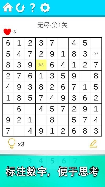 Sudoku益智是一款风靡全球的经典数字逻辑游戏,它将带您进入一个充满智慧挑战的数字世界。游戏拥有海量精心设计的数独关卡,所有题目均由智能算法随机生成,确保每次游戏都能获得全新体验。您可以根据自身水平自由选择初级、中级或高级难度,循序渐进地提升解题能力。游戏界面清新简洁,操作直观便捷,无论是数独新手还是资深玩家都能快速上手。现在就加入这场脑力风暴,在数字的海洋中尽情遨游吧!