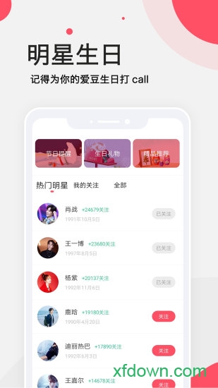 明星生日:收录了海量明星生日数据,包括大陆、港台、日韩及网红明星。追星族可以随时关注偶像动态,在特别的日子里为爱豆送上真挚祝福。