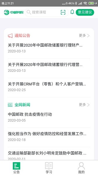 中国邮政网络学院移动客户端是专为邮政系统员工打造的专业学习平台,不仅提供行业资讯浏览和学习资源查阅功能,还支持在线交流和个人学习进度管理。平台采用严格的账号验证机制,所有学员账号均由学院统一分配,确保学习资源的专业性和安全性。系统后台由中国邮政网络培训学院学习中心统一管理,所有员工均可平等获取各类学习资源,包括最新行业动态、专业微课和互动问答等内容。平台资源均来自中国邮政网络学院分布式资源管理平台,内容权威且免费,仅对邮政系统内部人员开放。
