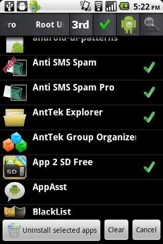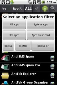 智能筛选:可按第三方应用程序、系统应用程序、SD卡应用程序、备份应用程序或冻结应用程序进行筛选