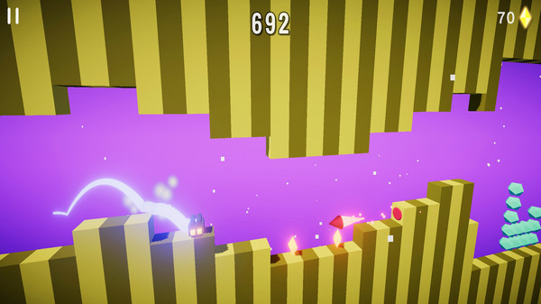 越过山峰,穿过可怕的裂缝,撞上变色的球体,沿途收集钻石。收集系统与成长体系相结合,钻石可以用来升级角色属性或解锁新功能,让游戏进程更有成就感。