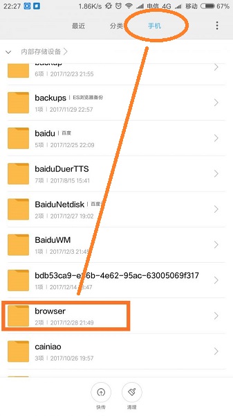 打开小米手机自带的文件管理器,并选择"手机",下拉找到"browser"文件夹。这个文件夹是浏览器所有数据的存储位置,包含浏览记录、下载文件等。在"browser"文件夹中找到"Videocache"文件夹,这是专门用于存放视频缓存的目录。Videocache里面存储的就是缓存和下载的视频文件了,用户可以直接在这里管理或分享这些视频文件。需要注意的是,部分视频可能因版权保护无法直接播放。