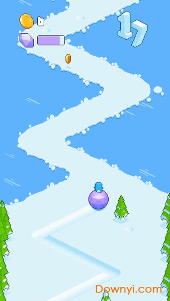 游戏操作的精髓在于微调控制,每次点击的角度变化越小,雪球移动就越稳定。单手操作往往能获得比双手更好的精准度。游戏中的障碍物种类繁多,不仅有固定的雪桩,还有四处游走的动物,它们都可能成为游戏终结者。玩家需要通过快速点击来调整移动方向,在左右摇摆中避开各种危险,同时还要把握机会收集道具。这种需要高度专注又充满策略性的玩法,让游戏极具挑战性。