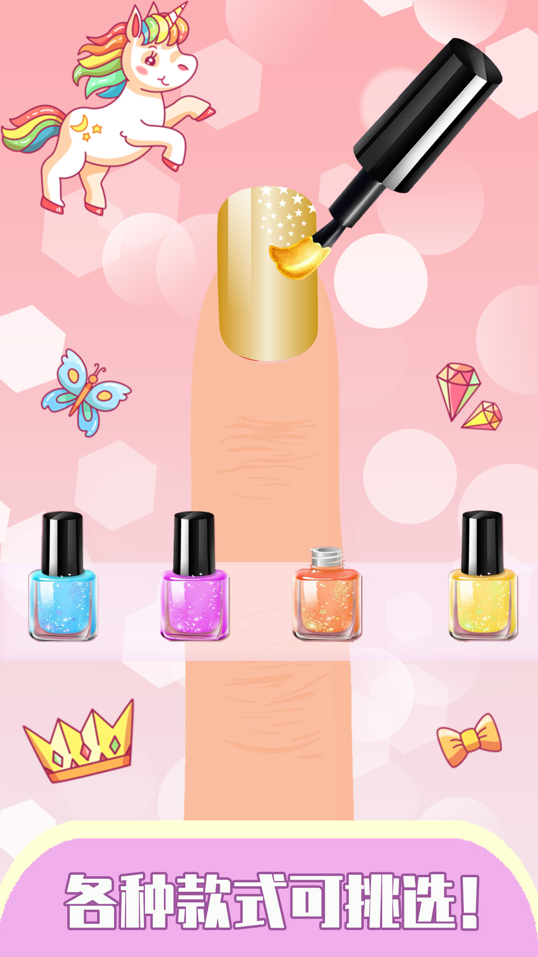 帮每一个想成为公主的女孩实现DIY美甲之梦的小工具!游戏特别设计了"公主挑战"模式,完成特定主题的美甲作品可以获得丰厚奖励。