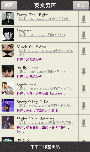 精选最新、最热、最英文金曲,还可根据你的心水添加新歌;个性化推荐算法根据学习进度匹配适合曲目。