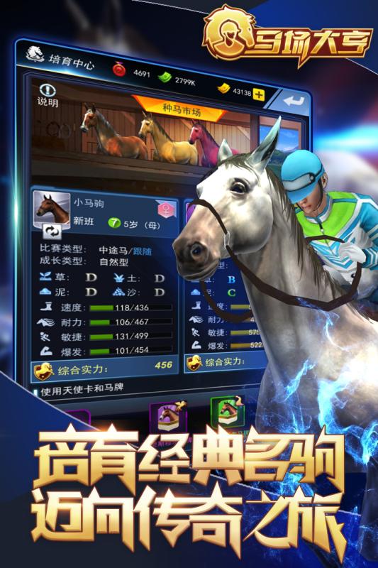 欢迎来到马场大亨的世界!在这里,你将扮演一位雄心勃勃的马场主,从零开始打造属于自己的赛马帝国。游戏不仅还原了真实赛马运动的精髓,更融入了丰富的经营养成元素。你需要慧眼识珠,在人才市场中发掘潜力无限的骑师;更要精心培育每一匹赛马,让它们成长为赛场上的王者。