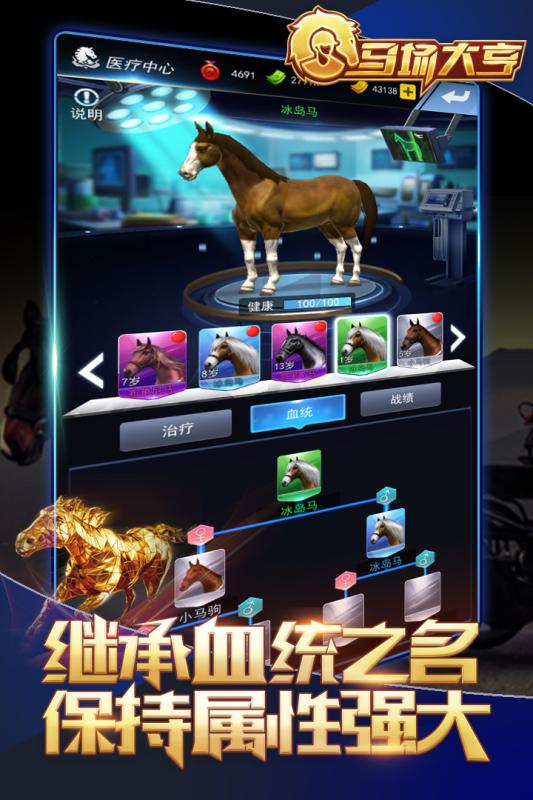 深度养成系统:从马匹的日常照料到专业训练,从基因培育到伤病治疗,全方位模拟真实赛马的成长历程。
