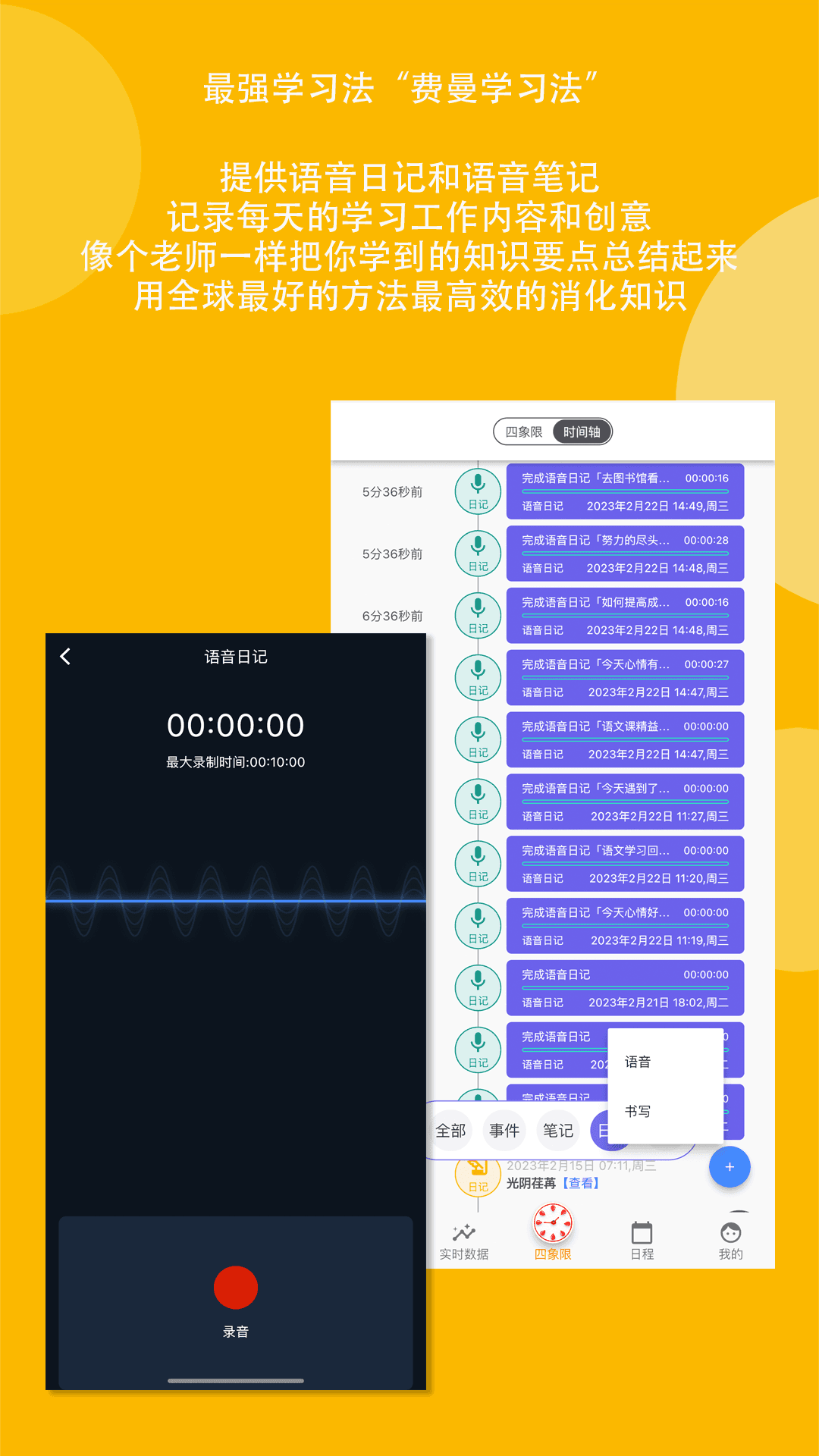 新增费曼学习法笔记模板,优化四象限任务拖拽排序功能,升级时间轴展示效果。语音输入识别准确率提升30%,日记模块新增心情指数记录,笔记支持Markdown语法。