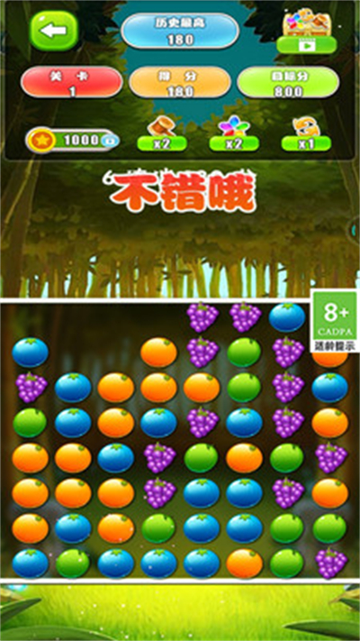 一款以水果为题材的二消手游,游戏玩法简单却充满策略性。只需要将二个的水果连在一起就可以消除,但要想获得高分需要巧妙规划消除顺序。游戏节奏明快却不紧张,适合各个年龄段的玩家。精美的水果造型和生动的消除特效,让每一次游戏都充满乐趣。随着关卡推进,难度会逐渐提升,但通关后的成就感也会倍增。