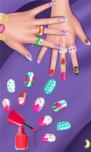 游戏最大的特色在于极高的自由度,玩家可以完全按照自己的审美来设计美甲。调色系统支持颜色混合,可以创造出独一无二的专属色号。3D建模的手指可以360度旋转,方便从各个角度查看效果。美甲完成后还能添加动态特效,比如闪烁的星光或飘落的花瓣。社交功能让你可以分享作品,也能欣赏其他玩家的创意设计。游戏操作简单直观,适合各个年龄段的玩家体验美甲艺术的乐趣。
