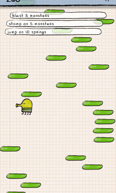 游戏的核心玩法是控制涂鸦小怪物在垂直方向上不断跳跃,玩家需要通过倾斜设备来控制跳跃方向。在向上攀登的过程中,会遇到各种特殊平台:有些平台会突然破碎,有些则会左右移动,还有会吞噬一切的可怕黑洞。游戏还设置了多种有趣的辅助道具,如可以快速上升的火箭和竹蜻蜓,帮助玩家突破难关。随着跳跃高度的增加,游戏难度也会逐步提升,玩家可以挑战自己的最高分数,并将成绩上传到全球排行榜,与全世界的玩家一较高下。豪华版特别加入了更多独特的关卡设计和专属道具,让游戏体验更加丰富多彩。