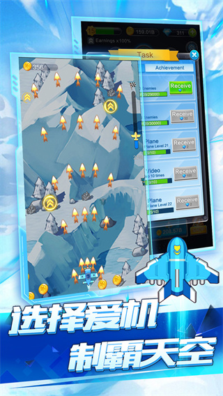 战机收集与养成:游戏拥有业内最丰富的战机收藏系统,包含未来科技、蒸汽朋克、神话传说等八大主题系列,共计57架特色战机。每架战机都经过专业动画团队打磨,从"赤焰凤凰"的涅槃特效到"暗夜幽灵"的粒子残影,均展现出独特视觉风格。养成体系包含五个维度:星级提升基础属性,技能升级强化特效,装备槽位搭配套装,涂装改变外观表现,专属僚机激活组合技。深度养成系统让每架战机都能培养出个性化战斗风格。