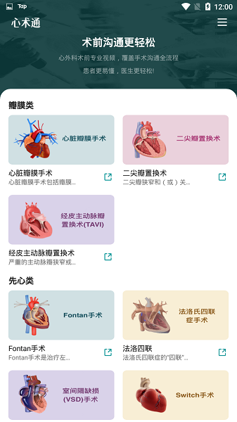 心术通是一款专为医疗行业设计的创新软件,旨在优化医生与患者之间的术前沟通体验。通过直观的3D视频演示和清晰的手术步骤分解,它帮助患者全面了解手术过程,消除疑虑与恐惧。软件内置丰富的免费视频资源,涵盖各类心外科手术细节,让医患交流更高效、更透明。简洁的界面设计和轻量化的体积,确保用户能够随时随地便捷使用,为术前沟通带来革命性的改变。