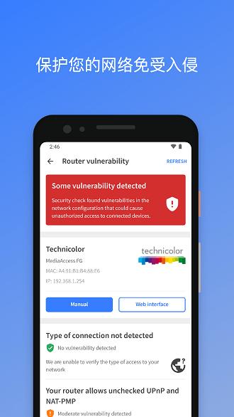 创新的入侵检测系统能在每次扫描时标记新出现的未知设备,确保网络安全。全面的网络扫描功能可识别所有连接设备,包括它们的IP、MAC地址等关键信息。专业级的网络测速工具能精确测量下载、上传速度及网络延迟。先进的设备识别算法可准确判断设备厂商、型号等详细信息。支持多种网络协议分析,包括NetBIOS、UPnP等,提供深度的设备诊断。内置丰富的网络工具集,满足端口扫描、DNS查询等专业需求。智能提醒功能会在检测到异常时通过多种方式及时通知用户。