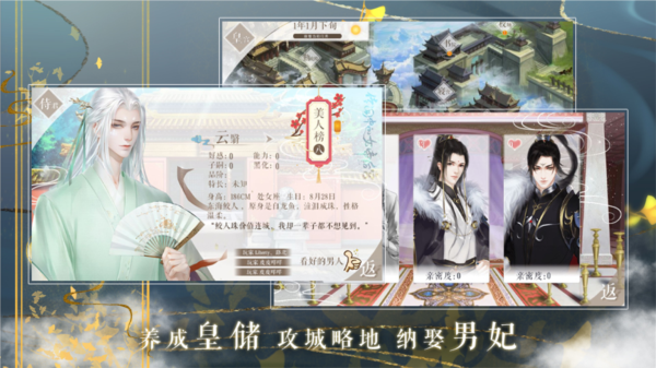 高度自由的惩罚系统,对冒犯皇权的角色可实施从冷宫到斩首等九种惩戒方式。扩展了可攻略对象库,新增妖族、仙门等奇幻种族角色,每位都有专属求爱任务链。创新的"战争与爱情"双线模式,既可率兵征战扩大疆土,也能举办选秀充实后宫。特别加入"一生一世"模式,满足专情玩家需求,遣散后宫将触发特殊结局。优化了战斗系统,新增"兵法演练"小游戏提升策略性,军事实力将影响部分剧情走向。