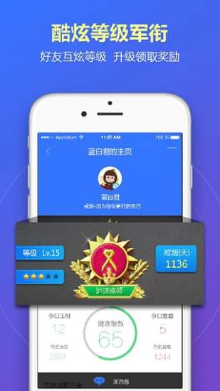 互动戒烟PK榜是《蓝白戒烟》的另一大亮点,你可以和好友一起戒烟,互相监督鼓励,比比谁的戒烟进度更快。酷炫的等级设置系统采用军衔制,精美的等级勋章让你在戒烟过程中收获满满的荣誉感。通过不断积攒经验值,循序渐进地升级,最终可以领取丰厚的等级大奖。