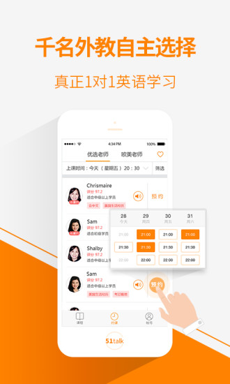 免费预约——只需在手机客户端完成简单注册,即可免费预约外教在线1对1视频课程,无需任何额外费用。平台提供灵活的预约系统,学员可以根据自己的时间安排随时约课。