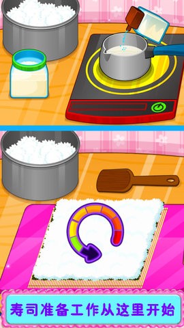 寿司制作:提供多种寿司类型和制作步骤,玩家可以自由选择食材和制作方式。