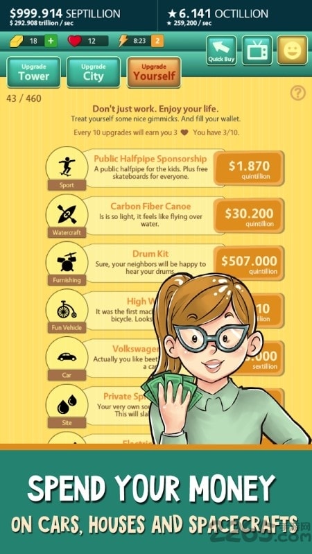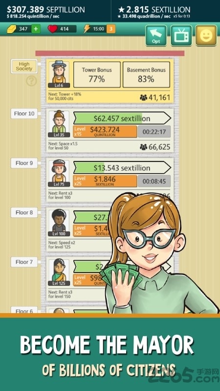 在最新版本的天空塔大亨中,您将迎来更加震撼的游戏体验。想象一下,数十亿市民将在您建造的云端摩天大楼中安居乐业,而源源不断的租金收入将让您跻身全球富豪行列。从百万富翁到亿万富翁,再到万亿富翁,您的财富增长将永无止境。游戏完美模拟了真实商业世界的运作机制,让您感受到白手起家到富可敌国的完整历程。更令人兴奋的是,您可以随心所欲地支配这些财富:购买限量版跑车、定制豪华游艇、投资私人航天项目,甚至是收购世界著名地标建筑。天空塔大亨打破了传统模拟游戏的限制,为您提供了一个真正意义上的财富自由王国。在这里,您不仅能体验商业帝国的崛起,更能享受顶级富豪的生活方式。