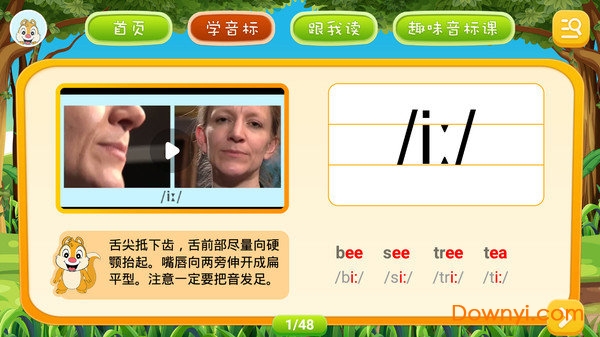 音标库:包含48个国际音标的详细讲解和发音示范。每个音标都配有发音要领说明和常见错误提示。