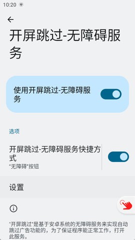 开屏跳过是一款和李跳跳功能类似的安卓系统广告拦截助手,但具有更轻量化的设计理念。作为开源软件,它完全透明可查,用户无需担心隐私安全问题。软件通过安卓的无障碍服务获取屏幕内容,智能识别广告界面中的"跳过"按钮,实现毫秒级广告拦截。安装后需要进行简单的权限配置,包括开启无障碍服务和关闭电池优化,这些设置只需操作一次即可长期生效。软件还贴心地提供了详细的使用教程,即使是新手用户也能快速上手。对于特殊广告类型,用户可以通过内置的自定义功能进行针对性设置,确保拦截效果最大化。