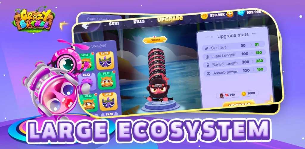 与传统单人贪吃蛇游戏不同,本作引入了革命性的多人竞技玩法。玩家需要在地图中与其他真人玩家展开实时对抗,通过精准的走位和巧妙的策略来获取优势。游戏采用物理碰撞机制,当你的蛇头碰到其他蛇身时就能将其击杀。随着游戏进程,玩家可以解锁更多特殊技能和道具,让每场对战都充满无限可能。独特的成长系统让玩家在享受竞技乐趣的同时,也能获得持续成长的满足感。