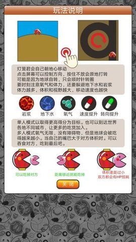 游戏采用创新的方向控制系统,玩家需要通过精准操控灯笼的移动轨迹来引导角色行动,这种独特的操作方式带来新鲜的游戏体验。动态地球系统会随机产生顺时针或逆时针旋转,玩家必须时刻关注氧气值和体力条的消耗情况。环境互动元素设计巧妙,地下暗河可能突然改道,休眠火山随时喷发,这些动态危险区域要求玩家保持高度警觉,合理规划吞噬路线才能持续成长。