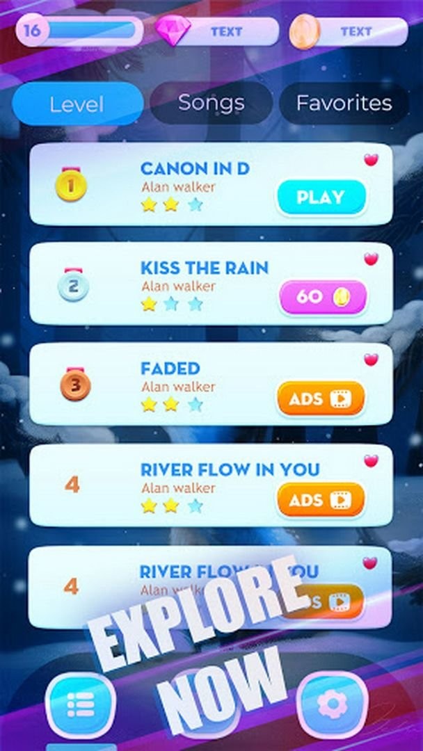 全新设计的用户界面,直观清晰的歌曲列表页面让你轻松找到心仪的曲目。支持收藏功能,可以随时重温喜爱的音乐。曲库涵盖古典乐与流行乐等多种风格,丰富你的弹奏体验