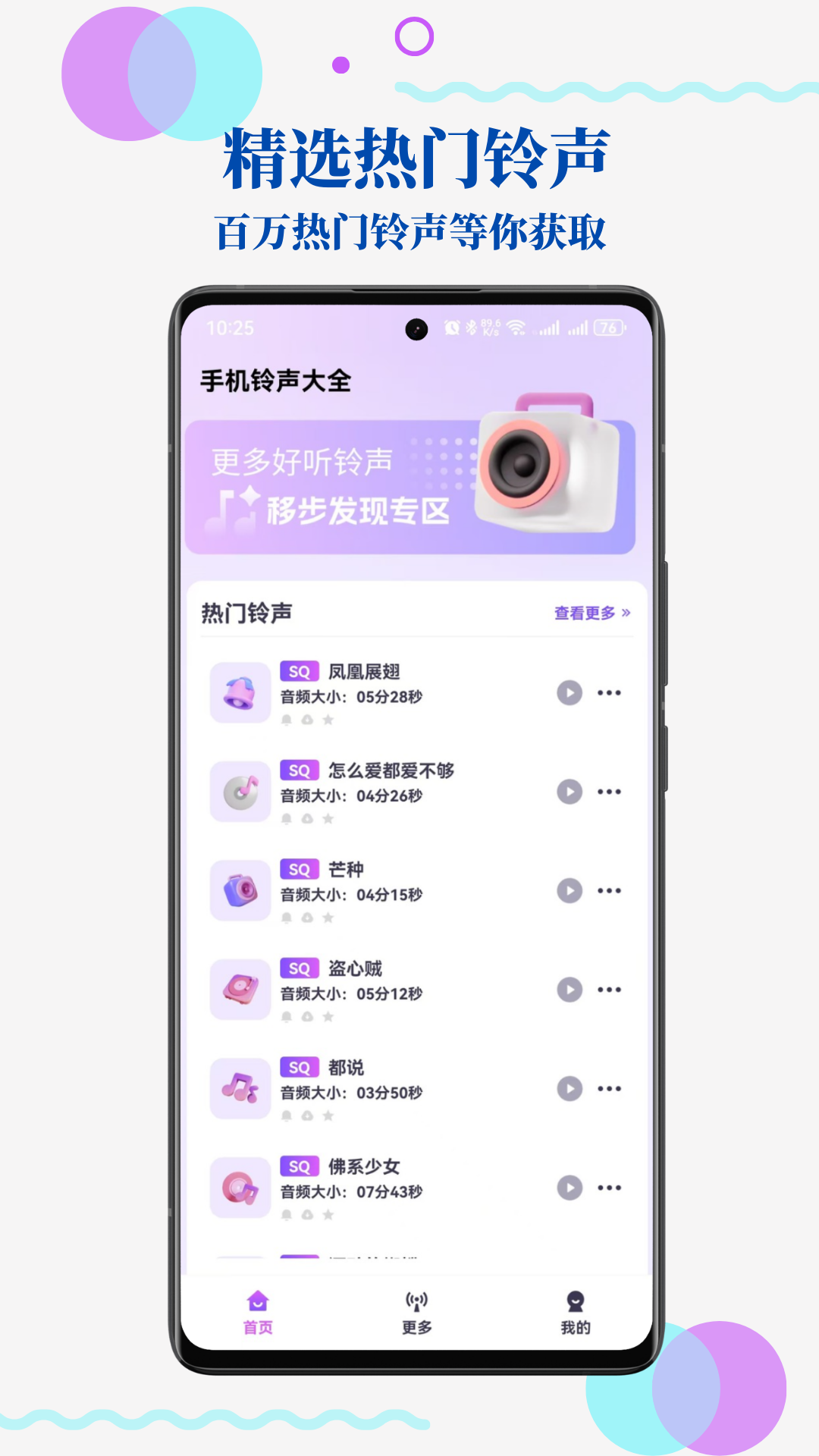 铃声下载:提供海量高品质免费铃声资源,支持高速下载,确保用户快速获取所需铃声。