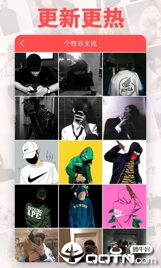 提供十多个分类,分类清晰明确,快速找到自己的爱好。每个分类下还有细分标签,让你能更精准地找到想要的头像风格。无论是文艺小清新还是酷炫暗黑系,都能轻松找到。