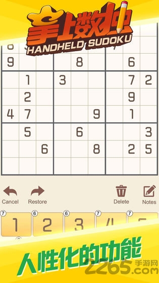 掌上数独手机版是一款精心打造的数独益智游戏,以经典数独玩法为核心,为玩家带来极致的脑力挑战体验。游戏拥有丰富的玩法模式和贴心的辅助系统,无论你是数独新手还是资深玩家,都能在这里找到适合自己的挑战。通过不同难度的关卡设计,游戏能有效锻炼玩家的逻辑思维、推理能力和专注力。精美简洁的界面设计搭配流畅的操作体验,让你随时随地享受数独乐趣。现在就下载游戏,开启你的数独大师之旅吧!