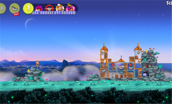 然后我们选择想要游玩的关卡,然后进入游戏,一般第一关都是教程关很简单。随着游戏进程,关卡难度会逐渐提升,需要玩家熟练掌握不同小鸟的特殊能力。游戏界面简洁明了,左上角显示当前得分和剩余小鸟数量,右上角则是暂停和重玩按钮。