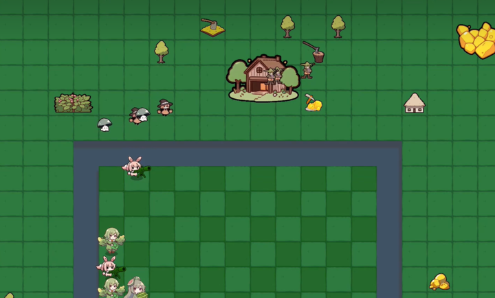 游戏开始后,玩家需要先选择关卡,游戏初期提供三个基础关卡:史莱姆、僵尸来袭和水池1。选择关卡后,玩家可以从收集到的植物卡片中选择合适的阵容进行布防。游戏中的植物需要通过资源解锁,玩家可以派遣金矿工、伐木工和农夫等工人收集资源。随着游戏的进行,玩家可以解锁更多强力的植物,组建更强大的防御阵容。成功抵御僵尸进攻后,玩家将获得丰厚的奖励,用于升级农场设施和解锁新内容。