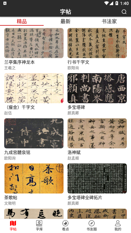 书法字帖碑帖app是为广大书法爱好者、学生、商务人士推出的临摹练字应用。通过书法字帖碑帖app,您的智能手机瞬间变身为百变字帖,随时随地供您练字。无论是想提升书法造诣,还是希望在商务场合展现一手好字,这款应用都能满足您的需求。它特别适合想要利用碎片时间提升书法水平的人群,让练字不再受时间和空间的限制。