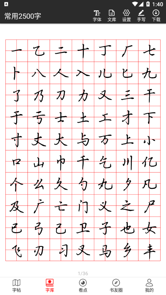 您可以指定字帖的结构格,以洞悉每一个字的间架结构。米字格、田字格、九宫格……应有尽有。这些辅助线能帮助初学者更好地掌握汉字结构规律。