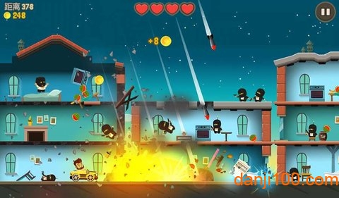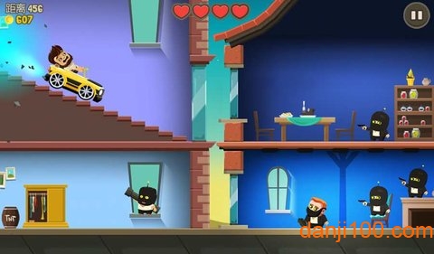 游戏采用简单直观的单手操控方式,让玩家轻松体验撞击快感。贴心的新手教程详细介绍了操作要领,只需上下滑动屏幕,就能控制大胡子在楼层间跳跃穿梭,在躲避攻击的同时反击敌人,拯救被困人类。