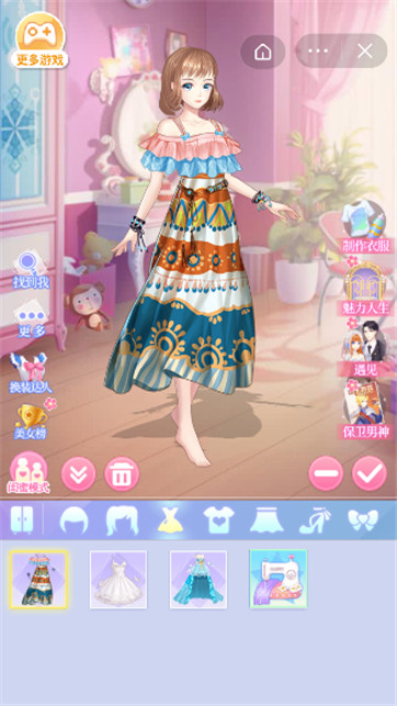 游戏提供了多样化的玩法体验,让你在享受时尚搭配乐趣的同时,还能参与各种有趣的活动。你可以通过学习游戏中的穿搭技巧,掌握更多时尚搭配方法,提升自己的造型能力。游戏设置了丰富的任务系统,完成这些任务不仅能获得丰厚的奖励,还能解锁更多精美的服饰和道具。在游戏商城中,你可以购买各种风格的衣服、鞋子和配饰,从甜美可爱到成熟优雅,应有尽有,让你的搭配选择更加多样化。