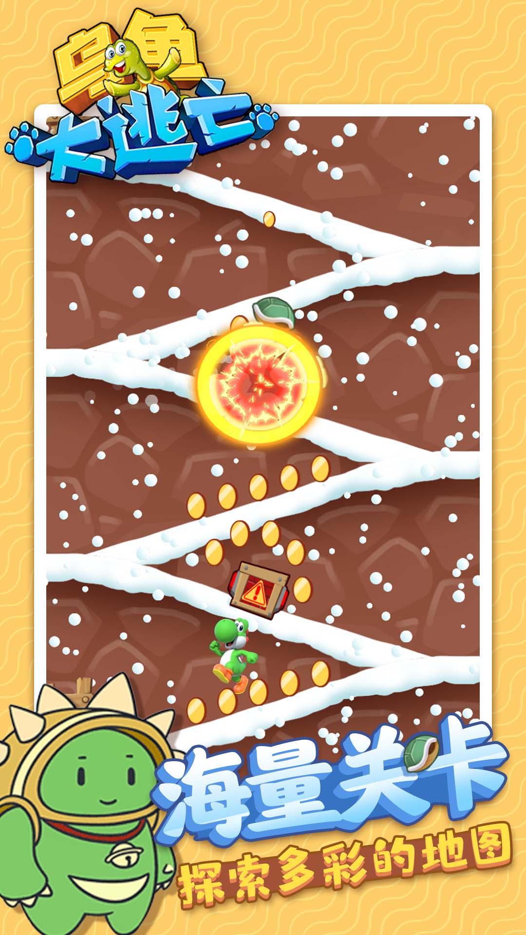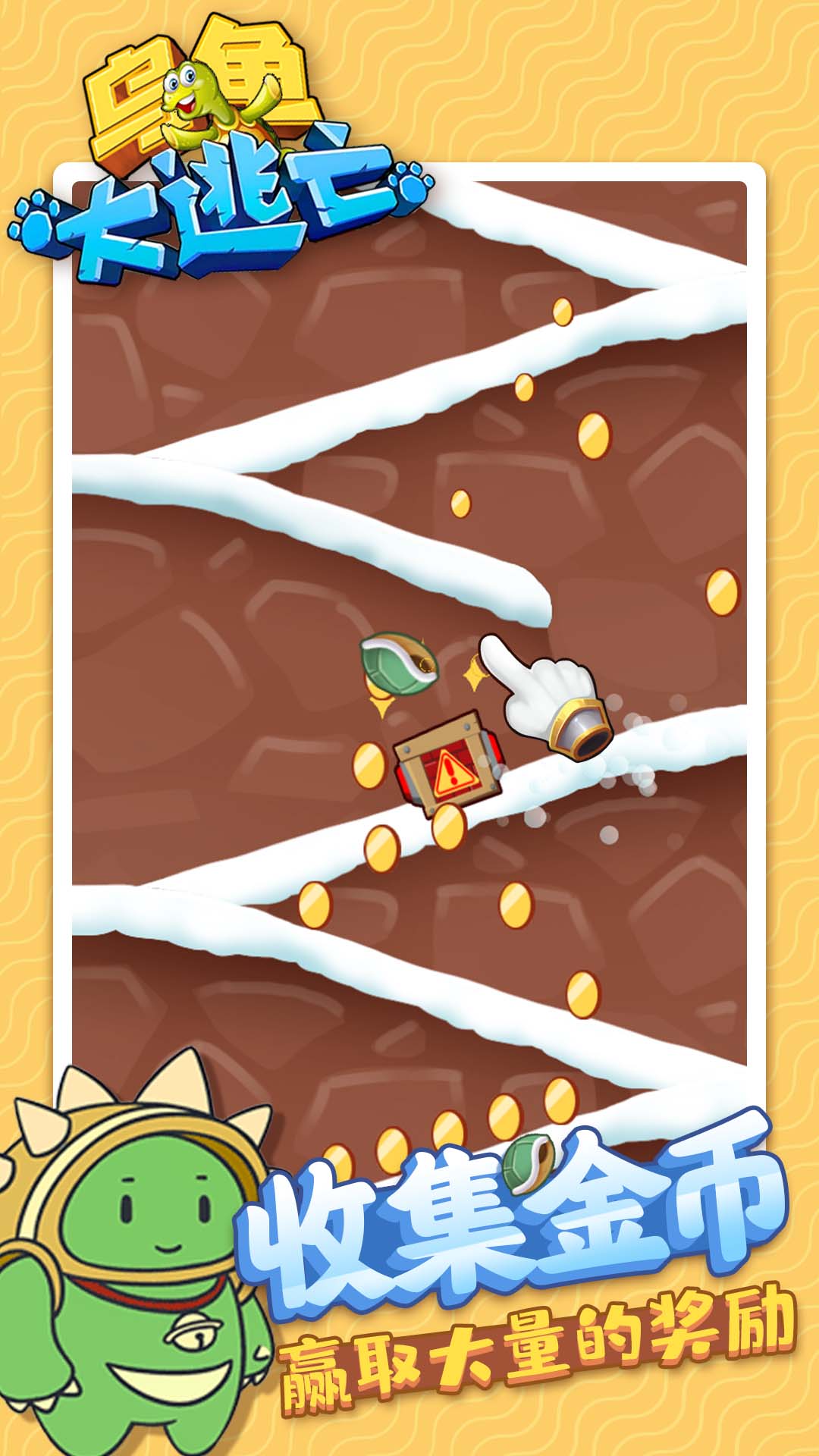 《乌龟大逃亡》是一款令人爱不释手的闯关冒险游戏,现已正式上线!在这款游戏中,你将带领一只呆萌的小乌龟穿越各种奇幻场景,展开一场妙趣横生的逃亡之旅。游戏采用简单直观的操作方式,只需通过手指点击就能控制小乌龟滑动前进,再次点击即可完成跳跃动作。这种简单易上手的操作方式让所有玩家都能快速掌握游戏技巧,享受闯关的乐趣。在冒险过程中,你不仅要躲避各种障碍物,还要收集散落在关卡各处的金币,这些金币可以用来解锁更多有趣的游戏内容。