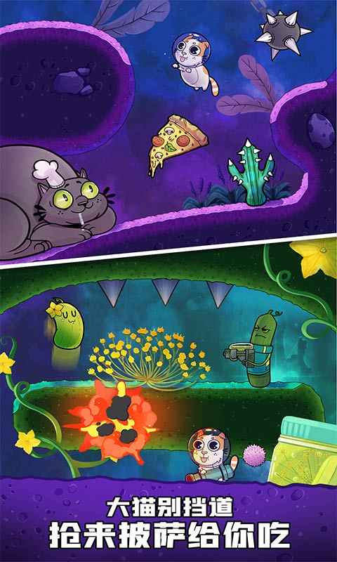 只有顺利逃脱你才能完成任务,所以在游戏中跳跃并成功逃离危险才是自己最需要做的事情。掌握火箭发射的时机和角度是关键,精准的操作能让你在太空中如鱼得水。游戏充满性你将被带到一个外太空,这里充满的未知领域需要你去探索;利用环境中的障碍物和道具,可以帮你更快完成任务。他将在太空使用发射火箭的反作用力推动自己前进,尽量带走多的小鱼干。记住,收集小鱼干不仅能解锁新装备,还能提升猫咪的能力哦!