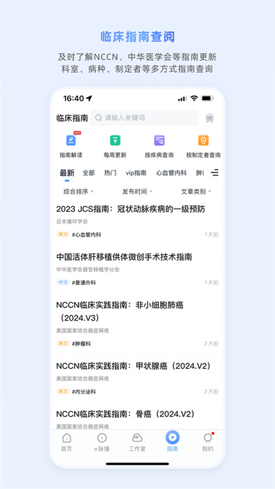 全面升级的个人管理系统支持收藏重要文献、管理社交关系、追踪讨论话题。创新的云存储功能让VIP用户能够永久保存下载的指南和文献,打造个人专属医学知识库。