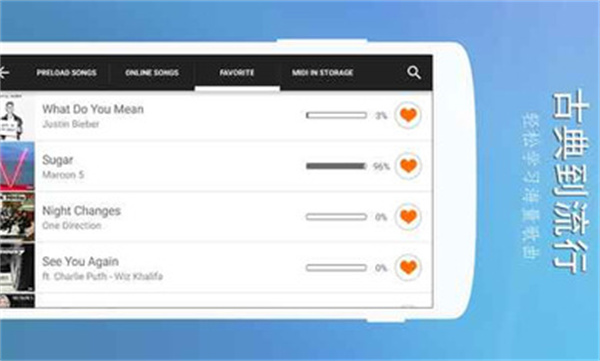 支持全球的玩家共同进行实时在线游戏,相互争夺比拼,刷新排行榜的排名,还能与好友组队挑战;提供真实的音效效果,贴近了最真实的钢琴音乐的音质,带来动听悦耳音效,采用专业录音棚级别的采样技术;游戏当中设置了内置的教程系统,就算是新手也能轻松的了解基本入门模式,从识谱到演奏技巧一应俱全。