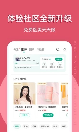社区体验全面优化,新增"免费医美体验官"活动,用户有机会获得价值万元的免费医美服务;