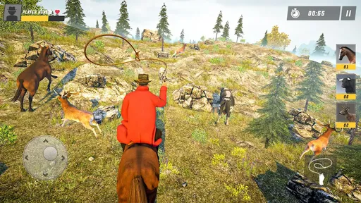 作为一名出色的牛仔,套索是你不可或缺的工具。游戏中的套索系统经过精心设计,具有真实的物理反馈效果,让玩家能够感受到每一次投掷的力度和角度变化。在游戏中,你将学习如何精准地挥动你的套索,捕捉到奔跑的野生动物,从基础的单手投掷到高难度的旋转投掷,多种技巧等你来掌握。不断训练和挑战自己,掌握各种套索技巧,成为捕捉高手,游戏还设置了专门的训练场,让玩家可以反复练习各种高难度动作。在这场西部冒险中,动物的种类丰富多样,包括水牛、斑马、鹿等,每种动物都有独特的行为模式和捕捉难度,成功捕捉它们将为你带来丰厚的奖励和经验值。