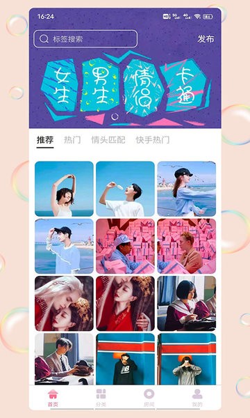 情侣专区:特别设置的情侣专区,提供成对设计的头像资源,让您和另一半的头像风格完美匹配。