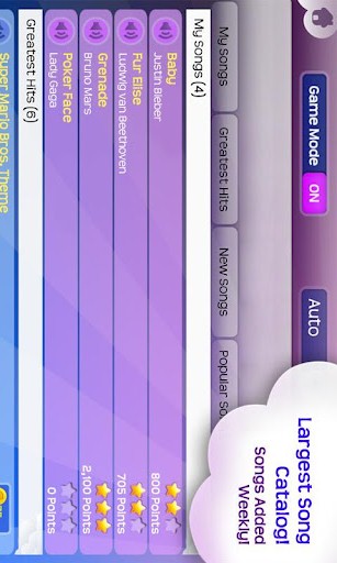 - 全新游戏模式中,玩家通过演奏积累经验值,从"新手"起步,最终向"钢琴大师"的称号发起挑战