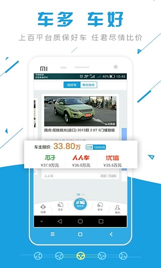全网可靠车源一手掌握。与全国5万多家正规车商合作,提供真实可靠的车源信息。
