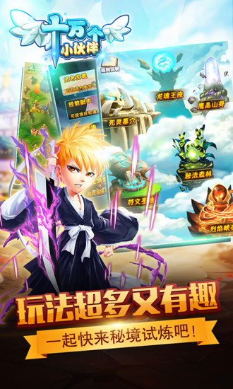 《十万个小伙伴》是一款休闲放置类卡牌手游,游戏中玩家扮演冒险主角,云集各色佣兵伙伴,与小伙伴一起背上行囊,勇闯神秘沙场。游戏拥有丰富的玩法系统,包括伙伴收集、翅膀解锁、闯关挑战和好友PK等。每个伙伴都拥有独特的技能和属性,玩家需要合理搭配阵容才能应对不同的挑战。游戏还设置了多个特色副本和活动,让玩家在轻松挂机的同时也能体验到丰富的游戏内容。
