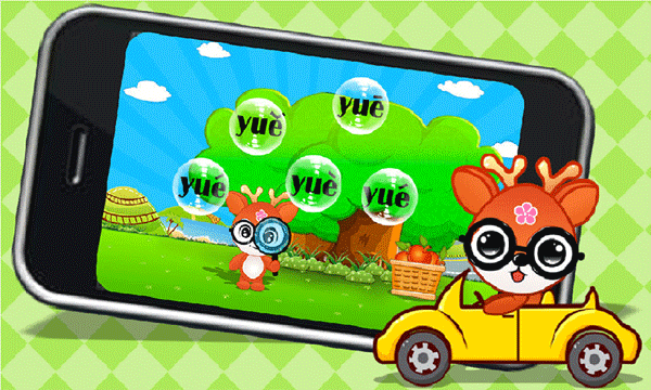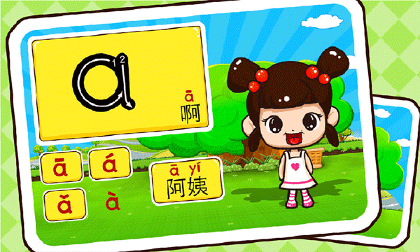 点击左侧的小女孩角色,可以选择进入声母和韵母学习关卡。在这个模式中,小女孩会耐心地教导孩子每个声母和韵母的正确发音和音调变化。通过反复跟读练习,孩子能够快速掌握拼音基础知识。